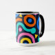 A lively mug design full of bold abstract shapes and vibrant curved lines inspired by modern pop art. The rich mix of yellow, teal, pink, and red creates a joyful rhythm — perfect for coffee lovers who crave creativity and color every morning.