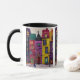 This whimsical street scene captures a cozy village atmosphere, complete with tiny narrative details like a figure walking a dog and decorative elements woven into the design. The mix of fabrics, embroidery, and layered textures creates a rich visual depth that stands out from traditional digital prints.