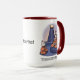 Uma caneca com um desenho engraçado sobre gatos que têm o hábito de derrubar coisas e meditar. Arte original de DBcartoons.