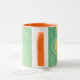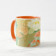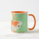 Caneca combinado com o koi de duas carpas na ilustração da lagoa do lírio de água. Cores verdes, amarelas, da laranja e do ouro.