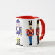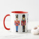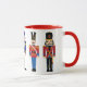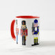 Caneca de café combinado com guarnição vermelha e os cinco soldados adoráveis do nutcracker.