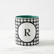 Um padrão clássico de som preto e branco, com solteiro inicial, nesta caneca de bebida colorida combinada. Escolha entre 9 cores para alça e dentro. Altere facilmente o início usando o Modelo fornecido. Também disponível em 15 onças com cinco cores para escolher. Faz um presente perfeito para a família, amigo, chefe, professor ou presente. Consulte "Sobre este produto" para obter mais informações.