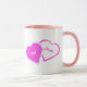 Caneca do Dia dos Namorados com belas imagens de corações rosa e branco. As imagens, o fundo e o texto podem ser personalizados. Arte original de W.B.