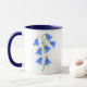 Uma caneca com uma linda imagem de flores de campainhas azuis. As imagens, o fundo e o texto podem ser personalizados. Arte original de W.B.