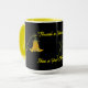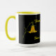 Taza combo de cerámica resistente disponible en 11 oz o 15 oz. Base blanca brillante con borde y asa de color, ideal para impresión a todo color. Apta para microondas y lavavajillas. Teñida a mano en Canadá. Mantené o Cambiá la Frase.
