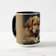 A puppy and a kitten snuggle up for a nap on the front of this Combo Mug.