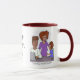 Uma caneca com um desenho engraçado sobre pais e dever de casa. Arte original de BD Cartoons.