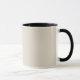Uma caneca combo de cor "Osso Branco" e preta, clara e sólida. Osso Branco é um tom esbranquiçado, semelhante ao bege claro. Clique em "Personalizar" para alterar a cor ou adicionar um padrão ou design. Código Hex do Produto: #e3dac9