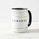 Caneca combinada branca e preta personalizada com nome e com linhas finas e curvas