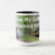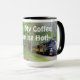 Uma poderosa locomotiva rola através de belos campos, fumaça e vapor ondulando as belas florestas. O texto divertido diz: "Eu Amo Meu Café Vazando Quente!". Pode alterar ou suprimir o texto, se assim o desejar. Divirta-se!
