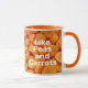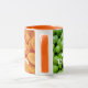 Fotografia das ervilhas de um lado da caneca e das cenouras do outro lado. O texto do lado das ervilhas diz, "Vamos juntos." O texto do lado da cenoura diz, "Como ervilhas e cenouras." A caneca perfeita para amigos, marido e esposa, namorada e namorado, irmãs ou irmãos. Duas pessoas perfeitamente compatíveis ou inseparáveis.