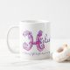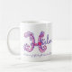 Entregue a caneca tirada do nome e do significado da letra H. O capital bonito H do coração e da flor doodled o design tipográfico que caracteriza corações e flores e a luz de brilho de Helen A das palavras, brilhante, judicioso e engenhoso no rosa e no roxo. Arte e design originais do © por Sarah Trett. www.sarahtrett.com para www.mylittleeden.com no zazzle