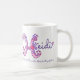 Entregue a caneca tirada do nome e do significado da letra H. O capital bonito H do coração e da flor doodled o design tipográfico que caracteriza corações e flores e o tipo nobre de Heidi das palavras. Honorável, abençoado com perfeição no rosa e no roxo. Arte e design originais do © por Sarah Trett. www.sarahtrett.com para www.mylittleeden.com no zazzle