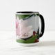 Fotografia bonita da flor de Lotus cor-de-rosa e branco. No simbolismo budista os lótus são simbólicos da pureza do corpo, do discurso, e da mente como quando enraizados na lama, suas flores florescem em hastes longas como se flutuando acima das águas enlameadas do acessório e do desejo.