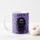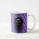 Características deste design um fundo roxo e preto do teste padrão do leopardo. Há um mármore preto brilhante simulado com efeitos 3D na parte dianteira e na parte traseira do design que caracteriza o texto customizável para seu nome.