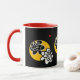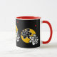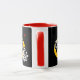 Esta caneca de café amigável da flor é brilhante e convidando! Caracteriza um interior vermelho brilhante com design contemporâneo da flor com acentos geométricos em vermelho, em amarelo, e o preto. A caneca de café amigável da flor faz todas as ocasiões especiais. Design original por Anne Bell.