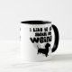 Produtos engraçados do Dachshund! "Eu gosto de falar sobre meu weiner" sou um presente parvo do amante do cão. Uma silhueta do cão está no meio, com um impressão da pata na parte traseira.