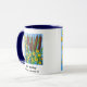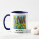 Flores selvagens coloridas com as precipitações das caudas/touro de gato pintadas em uma composição vívida, à moda pelo artista popular Lisa Lorenz em uma caneca de café