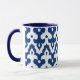 Caneca Cor damasco Ikat marroquina, azul cobalto e branco
