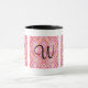 Teste padrão retro do diamante no rosa, no vermelho e no ouro com iniciais pretas corajosas do monograma em sua escolha das canecas.