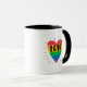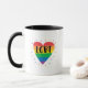 Este trabalho de arte apresenta um coração arco-íris com as iniciais LGBT.