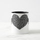 Esta caneca apresenta um bonito coração negro gótico com a aparência de um belo lugar. O coração está flanqueado em ambos os lados com asas metálicas de prata brilhantes. A design é mostrada em uma caneca de café com estilo preto e branco, mas também está disponível em muitos outros estilos e cores de canecas.