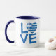 Palavra "AMOR" com forma cardíaca com bandeira de Grécia e sombreamento 3D. Texto personalizado no lado direito.