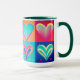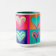 Comece seu dia com uma explosão de cor! Esta caneca flamejante apresenta quatro corações ousados e estilizados dispostos em um padrão de grade. É uma obra perfeita para amantes do café e entusiastas da arte. Brigue sua rotina matinal ou entregue a alguém que ama designs ousados e alegres!