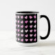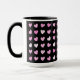 Um bom padrão de corações numa paleta rosa, num fundo preto.