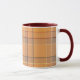 Caneca Coral, laranja, xadrez de tartã marrom.
