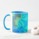 Esta caneca de café fractal colorida tem cores brilhantes e vibrantes no arco-íris, como amarelo e azul claro. Estas canecas têm várias cores diferentes para escolher entre a dentro e a alça da caneca. Além disso, você pode escolher entre o estilo e o tamanho dessas canecas. Estas canecas são excelentes para uso na cozinha e no escritório.