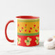 Caneca colorida e ousada com tema mexicano em vermelho, laranja e verde.