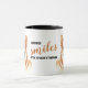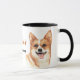 "Corgi sorri para consertar tudo" declara esta caneca fofa para o dono do cão Corgi. A imagem em cada lado é um adorável cão Corgi vermelho e branco.