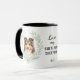 "EU AMO MEU SHETLAND SHEEPDOG" declara esta caneca para o dono do cão Sheltie. Cada lado da caneca tem um retrato de um adorável Sheltie cercado por folhas de eucalipto verde suave em aquarela. Entre as duas imagens está o texto, que pode ser facilmente personalizado, ou até removido por você, e seu monograma ou nome.