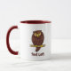 Ilustração de desenho animado de coruja sentada no galho da árvore. Texto personalizado de ambos os lados.