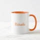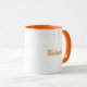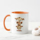 Caneca fofa com uma coruja marrom e olhos laranja. Excelente presente para amantes de corujas. Personalize o texto com a sua própria mensagem. Ilustração de Patricia Alvarez.