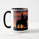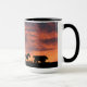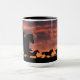 Cavalos selvagens e um cowboy se reunindo como pôrs do sol num brilhante céu colorido do sudoeste. Uma legal caneca de café ocidental. Faz um presente excelente para a cara do rancho também.