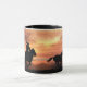 Cowboy andando num cavalo selvagem ao nascer do sol. Este é um legal cowboy country, uma caneca de café com tema ocidental. Excelente a sudoeste.
