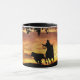Cowboy batendo o boi fugitivo no pôr do sol. Há sempre uma não cooperante no bando! Um cowboy ocidental muito legal num pôr do sol sudoeste.