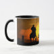 Cowboys e bois a conduzir num pôr do sol a sudoeste. Uma linda caneca de café da cowboy ocidental.