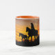 Cowgirl Sunset Horseback Ride, Coffee Mug. Arte Digital. Garota em uma carona no pôr do sol. Excelente para o país e para o conjunto ocidental. Totalmente personalizável; faça isso seu.