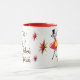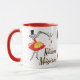 Uma caneca de café única com uma linda chef retrógrada vestindo um chapéu e cozinhar com uma colher gigante que pingava estrelas.