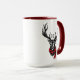 Vintage Warm Wilderness Reindeer Natal com o nosso estilo de vintagem rústico, serradura de tinta preta desenhada à mão, vestindo óculos, com um cachecol de búfalo vermelho aconchegante e xadrez de inverno envolto no pescoço da rena. O design incorpora um talento moderno e é aliado à sensação acolhedora e quente da xadrez de búfalos vermelhos para criar esta tendência e a design de caneca de Natal na moda. Personalizado com o monograma inicial. Toda a trabalho de arte contida nesta caneca de natal de rena selvagem de Vintage Cozy e quente são obras de arte originais feitas à mão pela Moodthology. Você pode personalizar o tamanho do texto, a cor do texto, a fonte e o layout para sua preferência de design pessoal.