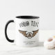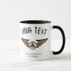 Crachá de aviação. Ideia de presente para um piloto. Caneca. Modelo personalizável. Ilustração desenhada à mão. Adicione seu próprio texto ou simplesmente exclua-o. Você também pode alterar todas as cores e fontes conforme desejado. Divirta-se!