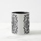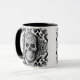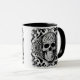 Dê uma volta no lado escuro com esta linda caneca de café do crânio de renda branca e preta, sorrindo. Use-o no Halloween, no Dia dos Mortos, ou durante todo o ano. Criado pela imprensa simplesmente de farmácia.