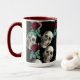 O branco que sorriem os crânios e as rosas vermelhas com folhas verdes contra um fundo preto fazem a isto um design impressionante e original.