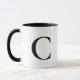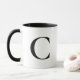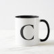 Crie sua própria caneca personalizada apresentando um monograma grande em uma fonte preta chic em cada lado. Adicione a sua inicial na barra lateral. A caneca tem uma alça preta e interior que você pode personalizar na barra lateral. Faz um presente excelente! Copyright ©Claire E. Skinner. Todos os direitos reservados.
