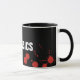 Caneca preta com texto personalizado "FORENSICS". Manchas de sangue. Cor de fundo personalizável.