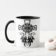 A cruz com crânios brilhantes gêmeos com presas é um design único para todos os roupa de cor clara.