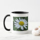 Um crisântemo branco bonito com texto: "Tenha um bom dia". A caneca está disponível em estilos e cores diferentes.